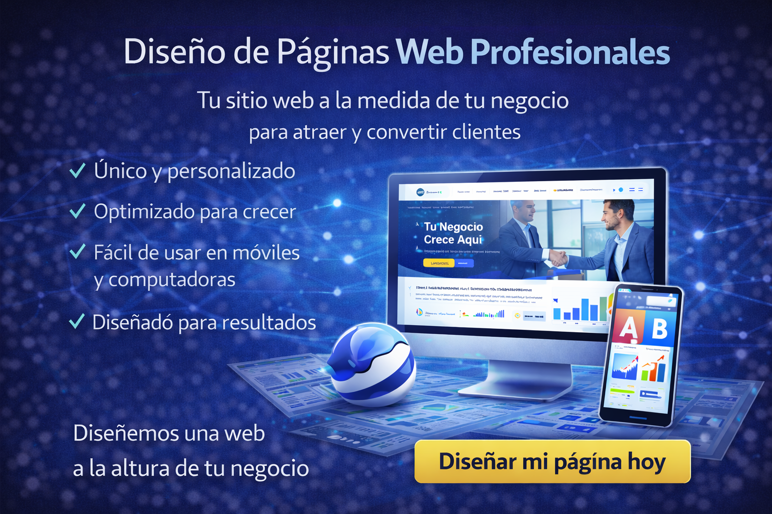 Tu página web es la base de tu presencia digital y el primer punto de contacto con muchos de tus clientes. Un buen diseño web no solo debe verse bien, debe comunicar confianza, guiar al usuario y convertir visitas en oportunidades reales de negocio.
